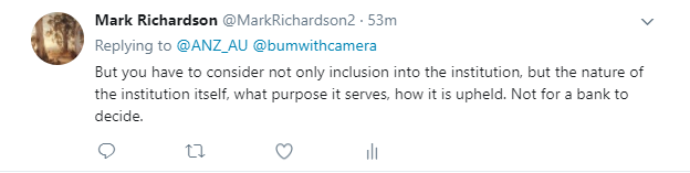 The corporate world is increasingly jumping on board liberal causes. Recently for instance the ANZ bank has come out in support of same sex marriage. The bank posted tweets in support of same sex marriage; after some criticisms in response to this they followed up with this tweet,: