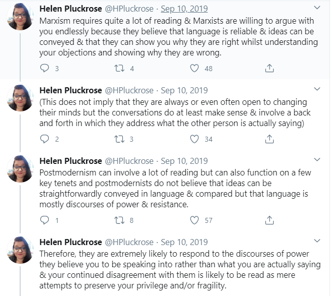 I've participated in a few discussions with fellow dissident rightists about postmodernism. There is an awareness that this is something to be understood. I'm therefore sharing a discussion about it made originally on Twitter by Helen Pluckrose. She is not a traditionalist but a secular humanist liberal, so she is on the opposite side of the fence to us. I have to give her credit, though, for making some of the distinctions between Marxism and postmodernism clear.